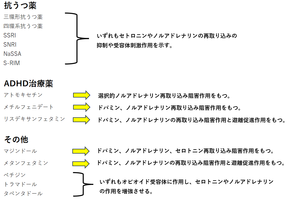この他にもMAO阻害薬も併用禁忌となっています。同一作用機序なので当然ですね。