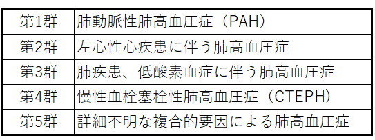 肺高血圧症は病変の部位により5つの群に分類されます。