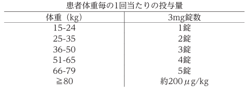 使い方は体重1kgあたり200μgを1回、空腹時に服用します。例えば体重60kgの人の場合、200×60=12000μg⇒12mgを1回服用します。ストロメクトール®錠の規格が3mgなので、1回4錠ですね。添付文書に用量の簡易表が載ってるので、これに従うといいでしょう。