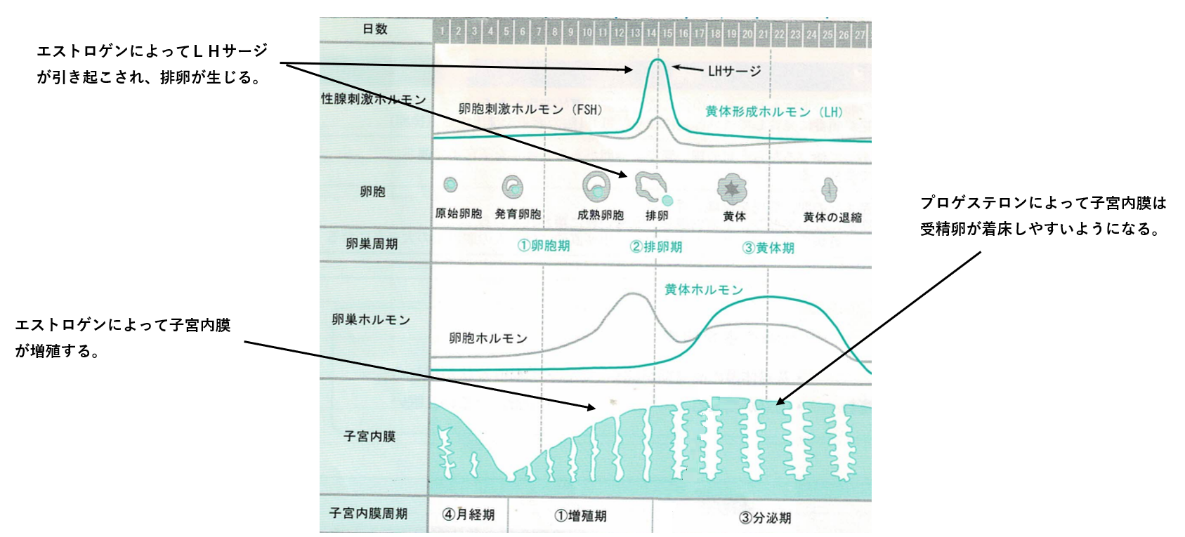 エストロゲンは子宮内膜を増殖し、LHサージ(大量のLHが分泌されること)の引き金になります。