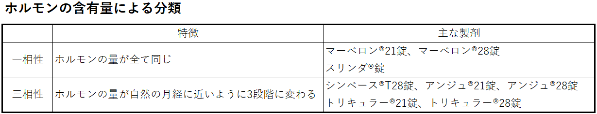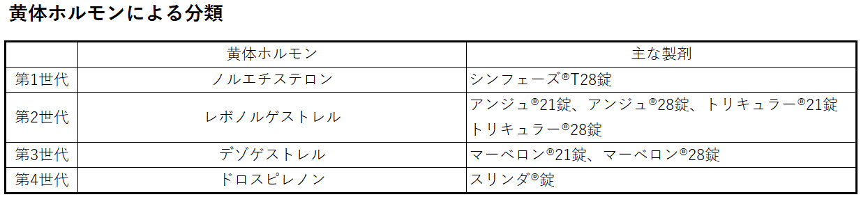 ※経口避妊薬は実薬に含まれるホルモンの量、プロゲスチンの種類によって分類されます。