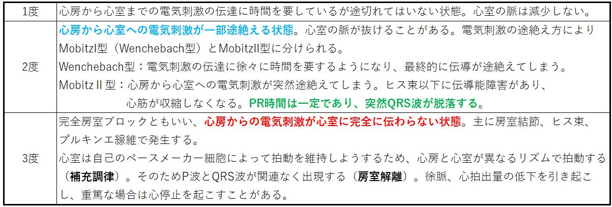 房室ブロックとは心房と心室の間で何らかの原因により、電気刺激が上手く伝わらなくなってしまう状態です(心房が収縮しても心室が収縮せず、脈がなくなってしまいます)。通常PR時間が延長します。