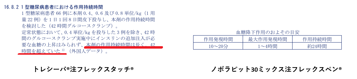 インスリン デグルデクはプロタミン結晶性インスリン アスパルトより効き目が長いです。