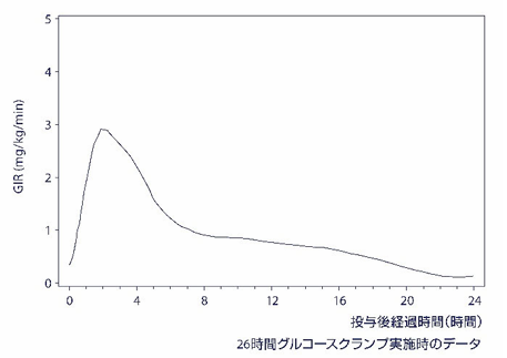 「通常、成人では、初期は1日1回4~20単位を皮下注射する。投与量は患者の状態に応じて適宜増減する。他のインスリン製剤を併用することがあるが、他のインスリン製剤の投与量を含めた維持量は、通常1日4~80単位である。但し、必要により上記用量を超えて使用することがある。注射時刻は原則として毎日一定とするが、必要な場合は注射時刻を変更できる。」