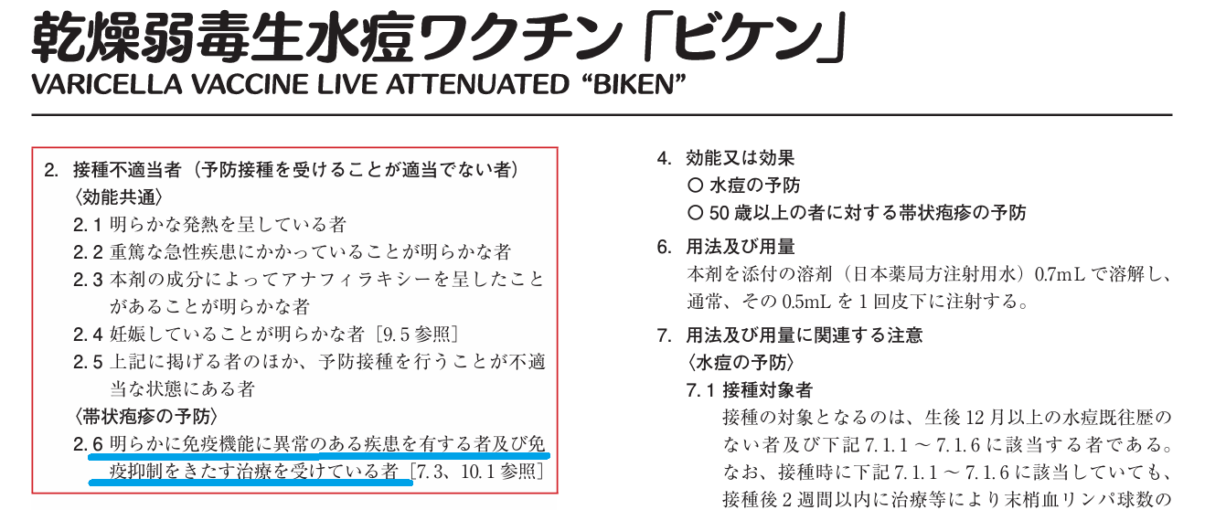 今回の事例の患者はリウマチ治療を行っています。当然ステロイドは長期間使用していたことでしょう。報告だけではプレドニゾロン換算でどの程度の量かは不明ですが、ステロイドの量が多ければ免疫抑制状態となり、生ワクチンは使えません。