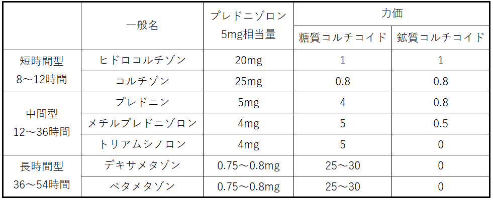 ヒドロコルチゾン20mgがプレドニゾロン5mgとほぼ同等の抗炎症効果をしめすことになります。