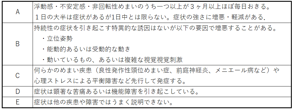 診断基準は国際めまい学会(Bárány Society)によると以下のA~Eの全てを満たすこととなっています。